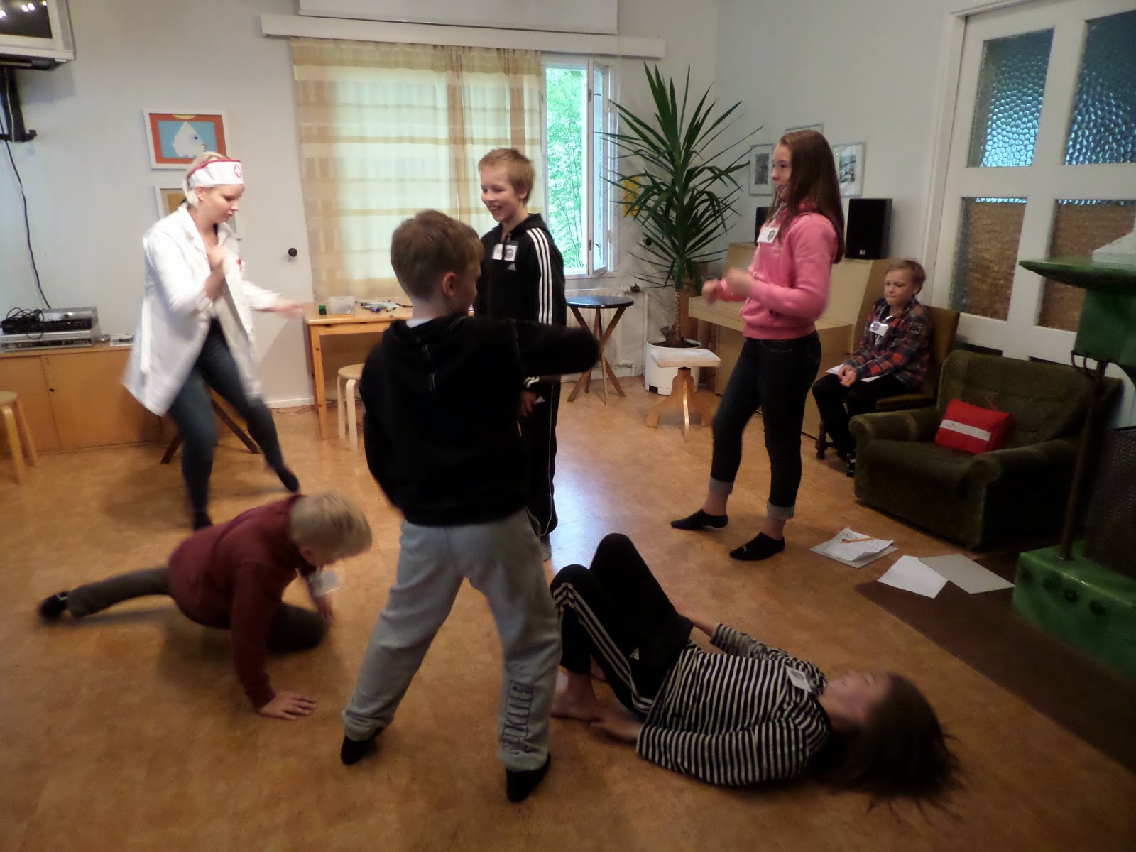 | Omalääkäri (Eeva Åkerblad) ja etsivät impron pyörteissä. |