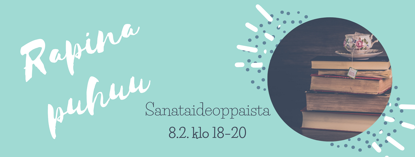 Viime syksynä rapinalaiset kokoontuivat Zoomiin puhumaan sanataideoppaista (koska tiedätte-kyllä-mikä esti kokoontumasta teekupposen äärelle, huoh). Kirjavinkkien jakaminen ja esimerkkiharjoitusten pohjalta kirjoittaminen tuntui etänäkin niin mukavalta, että päätettiin pitää vielä toinenkin samanmoinen Rapina puhuu sanataideoppaista -ilta. Siispä lämpimästi tervetuloa Rapina puhuu sanataideoppaista -iltaan Zoomiin maanantaina 8.2. klo 18–20!