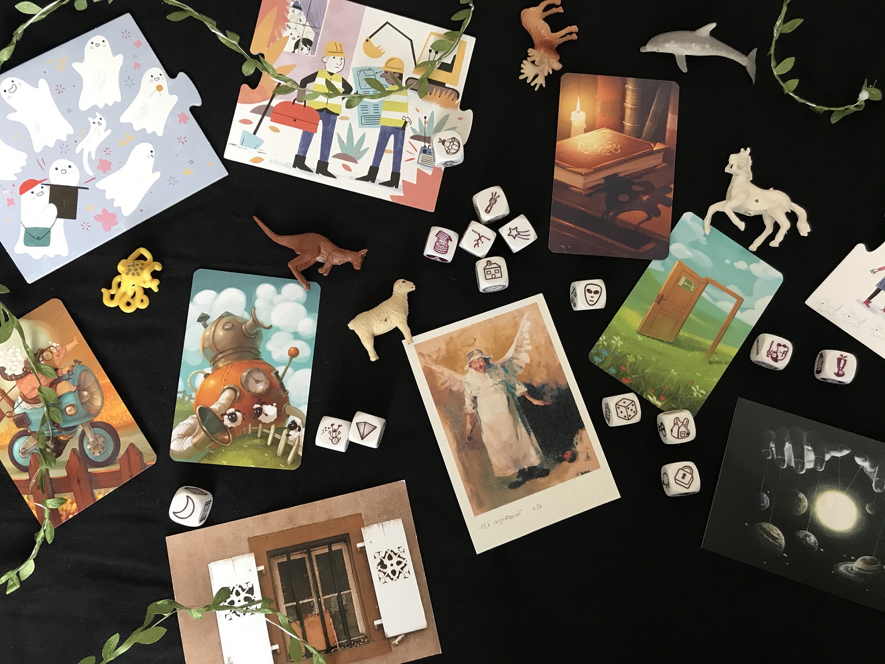 Kerrontataitoja voi harjoittaa kuten mitä tahansa taitoa. Jos juttu ei luista, voi kerronnan apuna käyttää erilaisia virikkeitä. Omasta elämästä tai päivän tapahtumista kertomista tukevat valokuvat, jotka muistuttavat tapahtumista, paikoista ja ihmisistä. Mielikuvitustarinoita voi houkutella esiin vaikkapa tarinanoppien, tarinapalapelien tai sanattomien kirjojen avulla. Myös monissa lautapeleissä on mielikuvitusta kutkuttavia kuvakortteja, joita voi pelimekaniikasta irrotettuina käyttää tarinankerronnan kimmokkeina. Mediakin tarjoilee valtavan määrän materiaalia. Leikkaa lehdestä erilaisia kuvia ja hyödynnä niitä: valitse yksi kuva tarinan alkupisteeksi ja yksi sen päätepysäkiksi. Mitä tapahtuu niiden välissä?