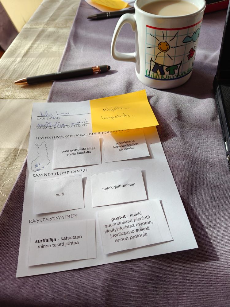 Viikonlopun suurimpana antina ja valttikorttina olivat kuitenkin tutut vanhat: kanssakärsijöiden vertaistuki ja kirjoittamiselle varattu aika.
